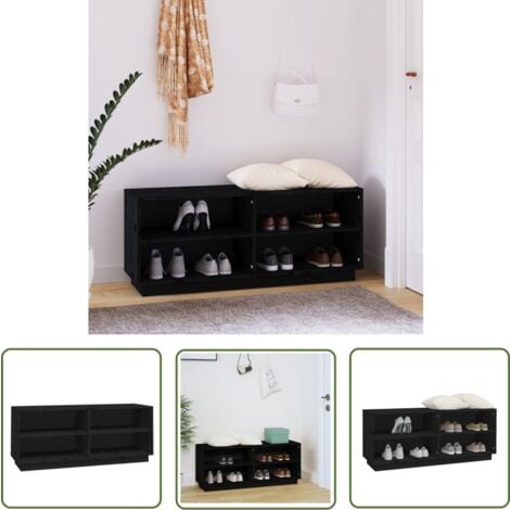 The Living Store Schuhregal Schwarz 110x34x45 cm Massivholz Kiefer